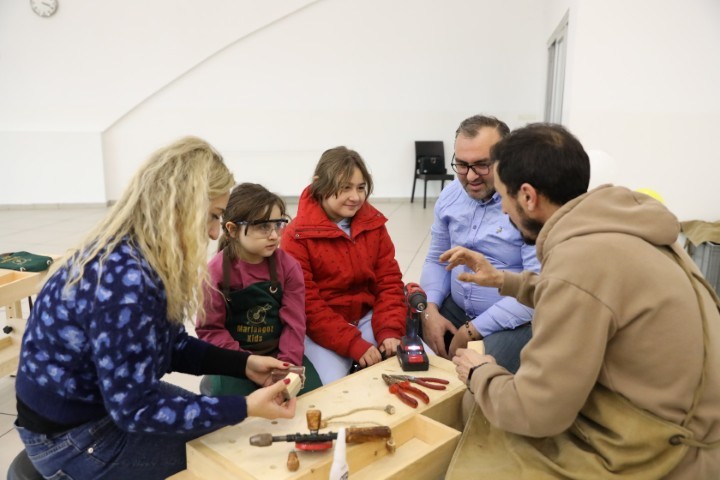 Özel Bursa Kültür Okulları Anasınıfı öğrencileri ve velileri, Marlangozkids lisansı ile okullarında kurulan atölyede gerçekleştirilen anlamlı bir aile katılımı etkinliğinde bir araya geldi. Öğrenciler, atölye derslerinde edindikleri becerileri aileleriyle paylaşma fırsatı bulurken; teknik ekipmanları güvenli şekilde kullanma, malzemeleri tanıma ve üretime dönüştürme süreçlerini uygulamalı olarak deneyimlediler. Bu özel günde öğrenme, paylaşım ve üretim bir arada yaşandı.