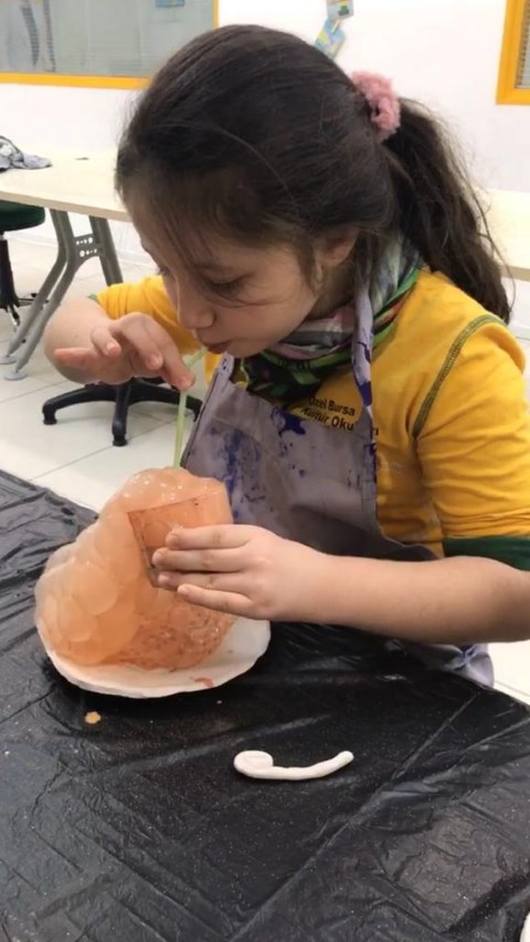 Seramik Kulübü öğrencileri bu ay ki derslerinde tabak tasarladılar. Tasarladıkları bu tabaklar seramik fırınında piştikten sonra, sır boya karışımları hazırladılar. Hazırladıkları bu karışımları pipet yardımıyla köpürterek baloncuk oluşturdular. Bu tekniği uygularken ki heyecanları büyük keyif verdi…